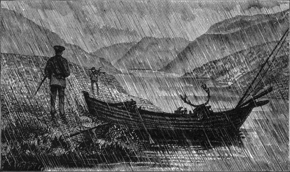 The Fjord was not looking as beautiful as usual, as there had been a great deal of rain, and the storm clouds and mist were still hovering about the low hills, so that no glories of the northern sunset were visible.