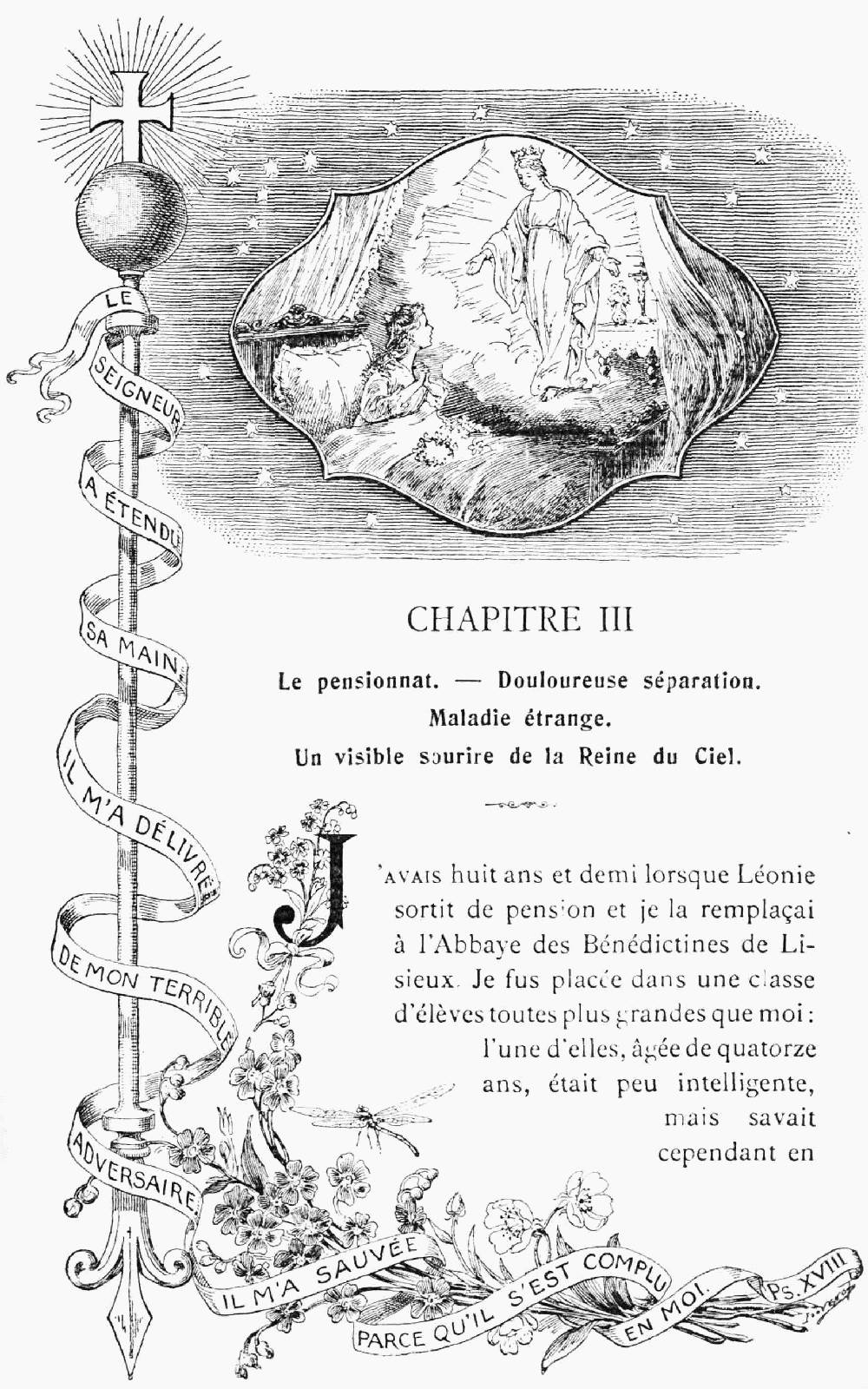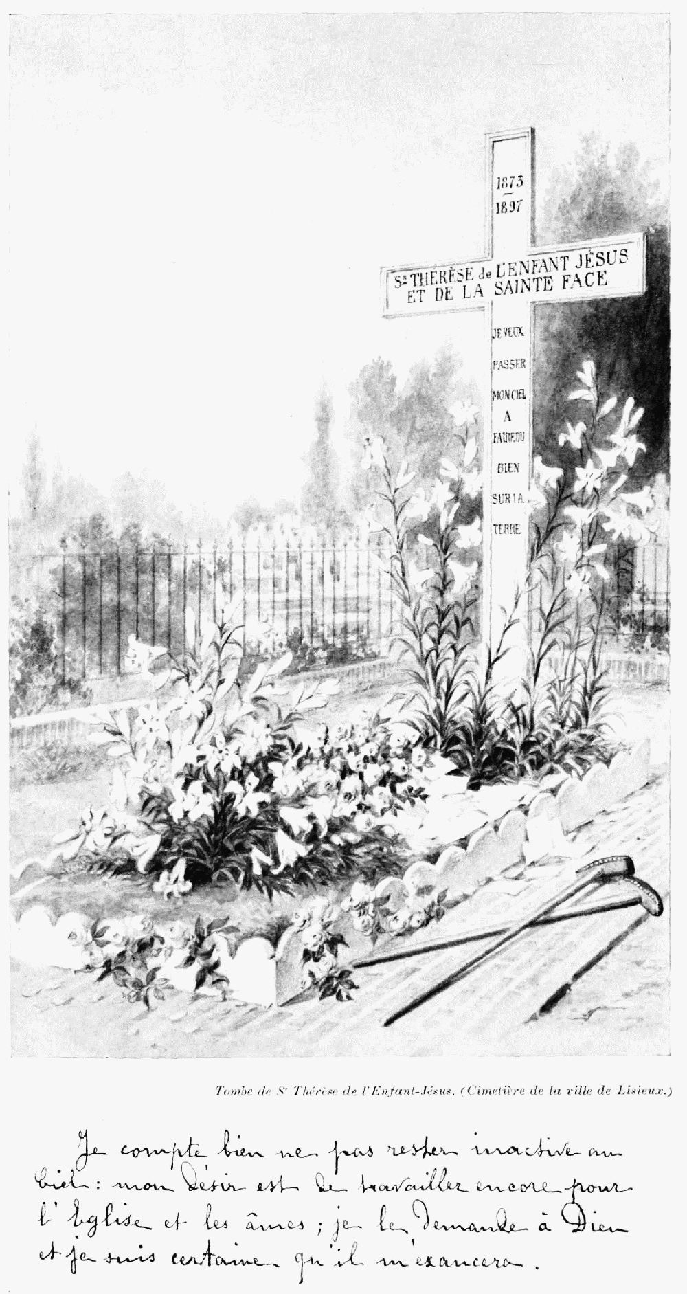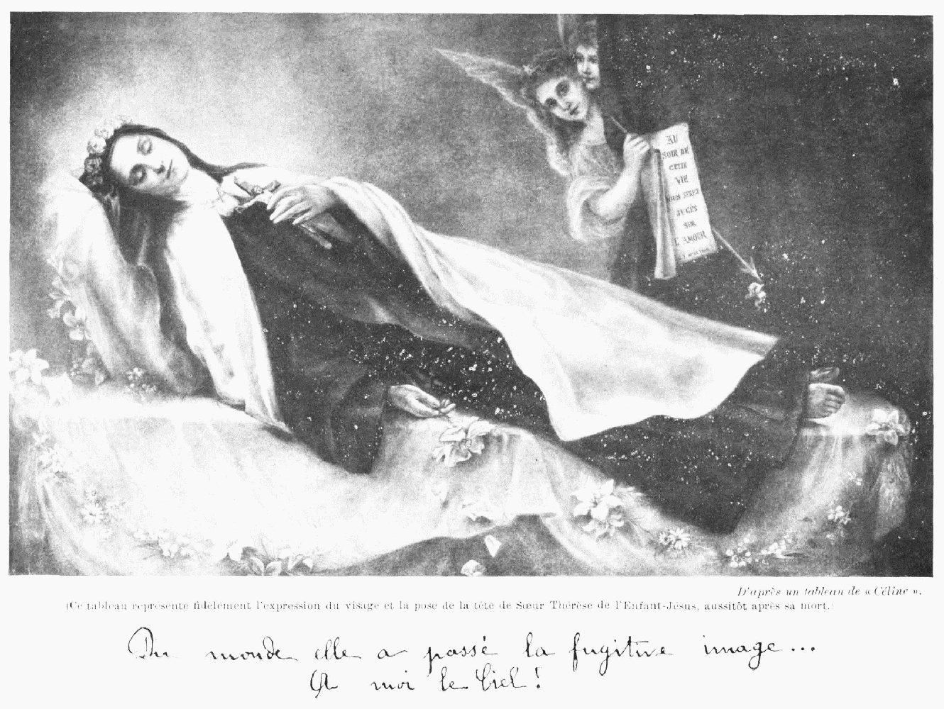 J'approuve votre dessein de faire une nouvelle édition de la Vie de Sœur Thérèse de l'Enfant-Jésus et de la Sainte Face. Vous savez comme moi combien de faits merveilleux semblent montrer que le bon Dieu veut mettre en lumière cette petite fleur du Carmel qui s'est épanouie dans votre cloître, puis a été cueillie vite pour être transplantée au Ciel.