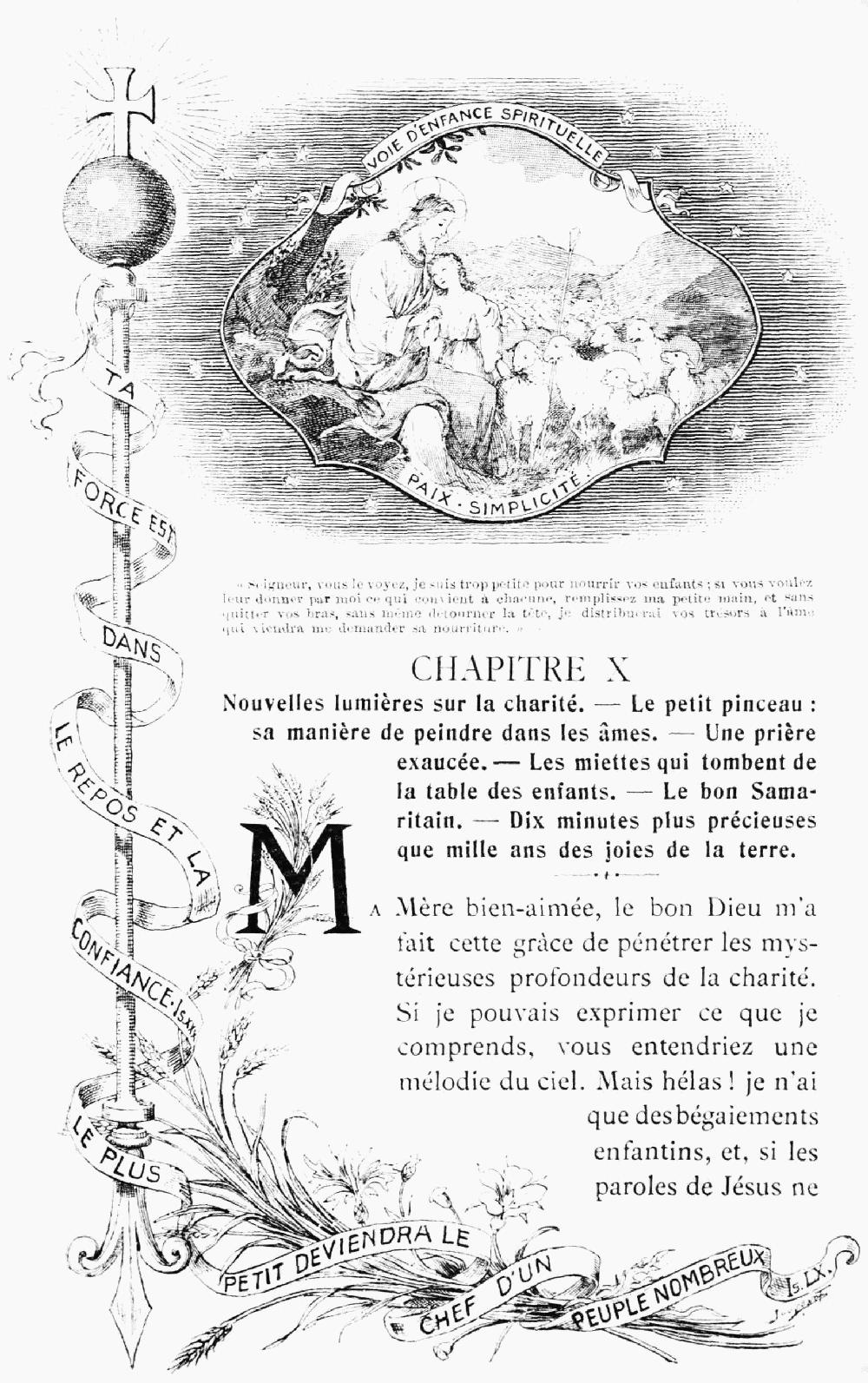 Vous avez cru, ma Très Révérende Mère, que votre Carmel ne devait pas être seul à respirer ce parfum; que cette lumière si brillante et si pure ne pouvait rester cachée dans l'étroite enceinte d'un monastère, mais qu'elle devait étendre au loin son rayonnement bienfaisant: six mille exemplaires enlevés en l'espace d'un petit nombre de mois disent assez que vous ne vous êtes point trompée. Je me suis réjoui en apprenant qu'une nouvelle édition se préparait: elle aura, sans nul doute, le même succès que les précédentes. S'il m'était permis d'exprimer ici un vœu, ma Très Révérende Mère, je demanderais que des plumes exercées s'essayassent bientôt à rendre, en plusieurs langues, la grâce presque inimitable de celle qui a écrit l'Histoire d'une âme: l'Ordre du Carmel tout entier serait ainsi mis en possession de ce que je regarde comme un précieux joyau de famille.