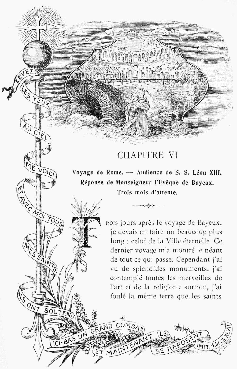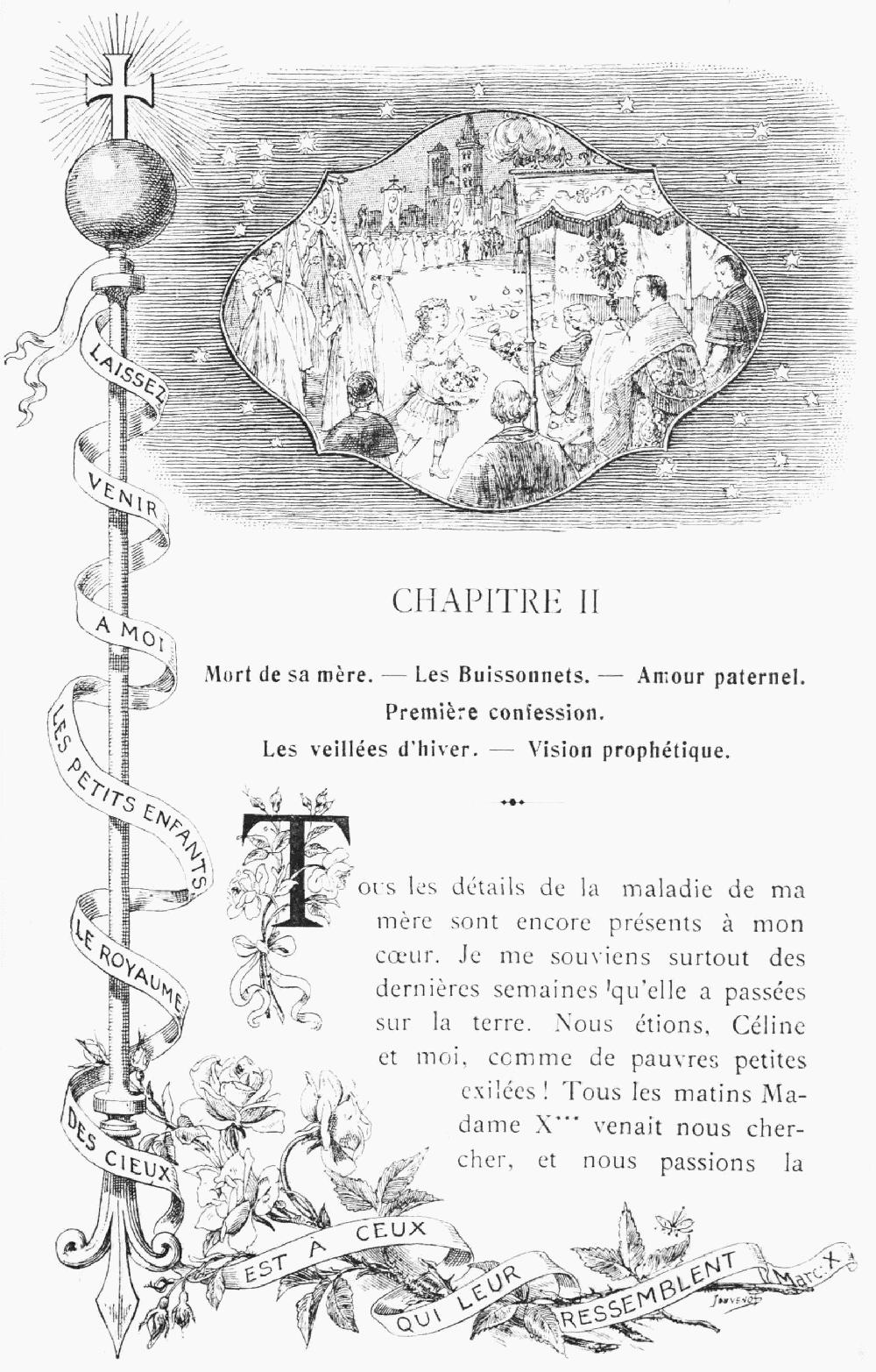 Conformément au décret du Pape Urbain VIII, nous déclarons que les titres de Saint ou de Vénérable qui, dans le cours de cet ouvrage, s'appliqueraient à des personnes sur lesquelles la sainte Eglise ne s'est pas prononcée, n'ont qu'une valeur purement humaine et privée.