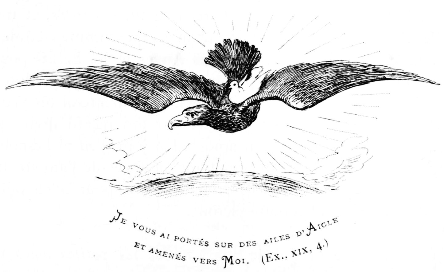 Suivons donc par la pensée et les saints désirs, l'âme de notre chère enfant, là où les grands aigles qui l'ont prise sur leurs ailes l'ont emportée dans les éternelles splendeurs: «Sicut aquila provocant ad volandum pullos suos, extendit alas suas et assumpsit eos.»—Ne pouvons-nous pas lui redire: «Vous êtes bienheureuse, vous que le Seigneur a choisie et élevée jusqu'à lui; vous habitez dans ses tabernacles»?—Maintenant: «Attirez-nous vers vous», afin que nous ne vivions aussi nous-mêmes que pour Jésus, l'Eglise et les âmes, les membres attachés à la croix que le Seigneur nous a choisie, mais le cœur en haut et les yeux au ciel pour y chercher la radieuse vision de la Face de Dieu.