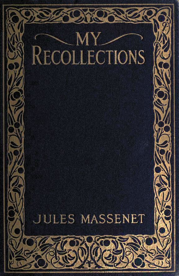 The Project Gutenberg EBook of My Recollections, by Jules Massenet This eBook is for the use of anyone anywhere at no cost and with almost no restrictions whatsoever. You may copy it, give it away or re-use it under the terms of the Project Gutenberg License included with this eBook or online at www.gutenberg.org Title: My Recollections Author: Jules Massenet Translator: H. Villiers Barnett Release Date: July 14, 2011 [EBook #36728] Language: English Character set encoding: ISO-8859-1 *** START OF THIS PROJECT GUTENBERG EBOOK MY RECOLLECTIONS *** Produced by Chuck Greif and the Online Distributed Proofreading Team at http://www.pgdp.net (This book was produced from scanned images at The Internet Archive.)