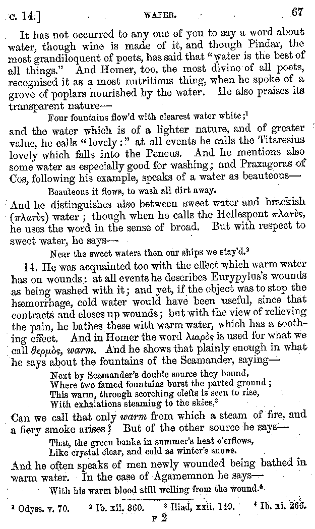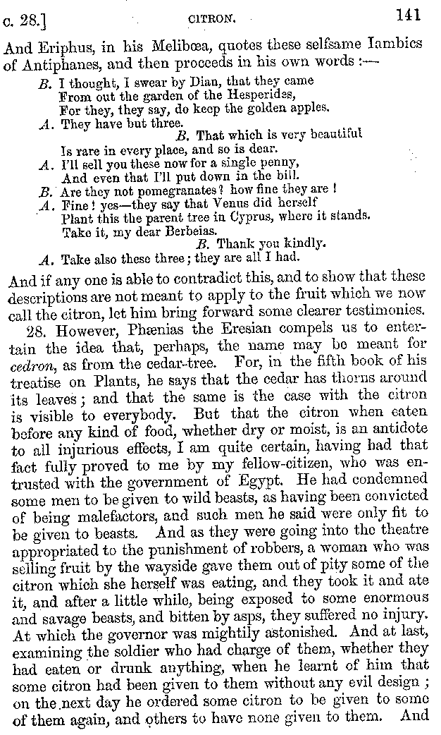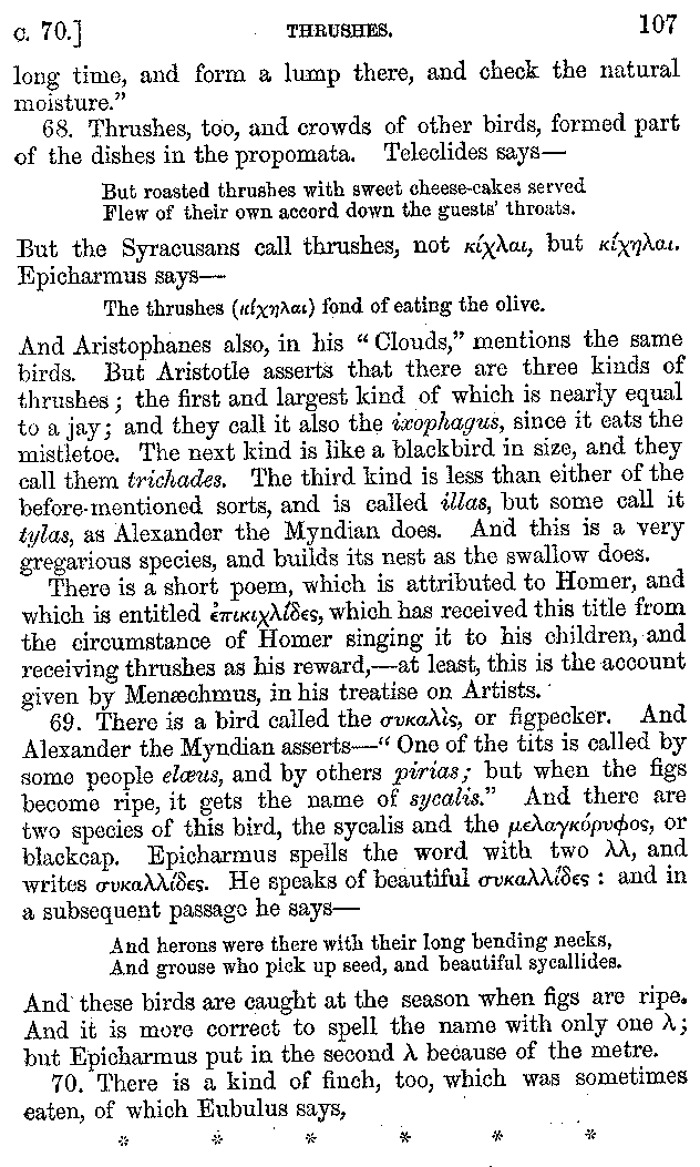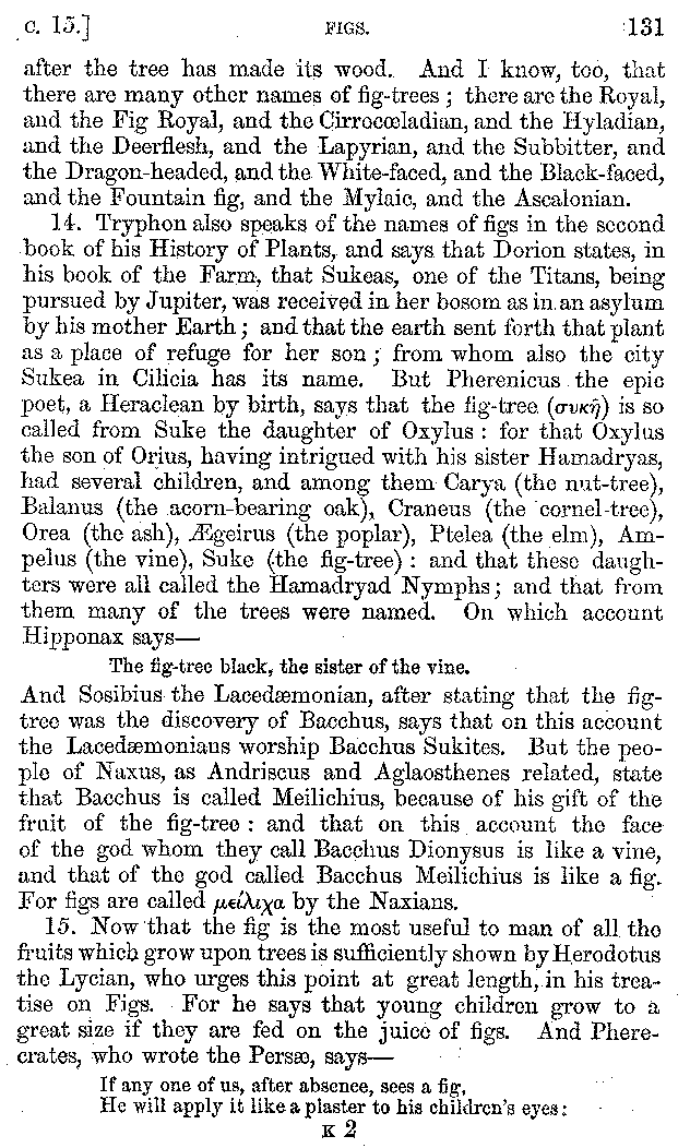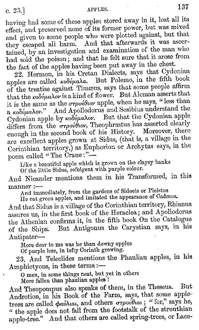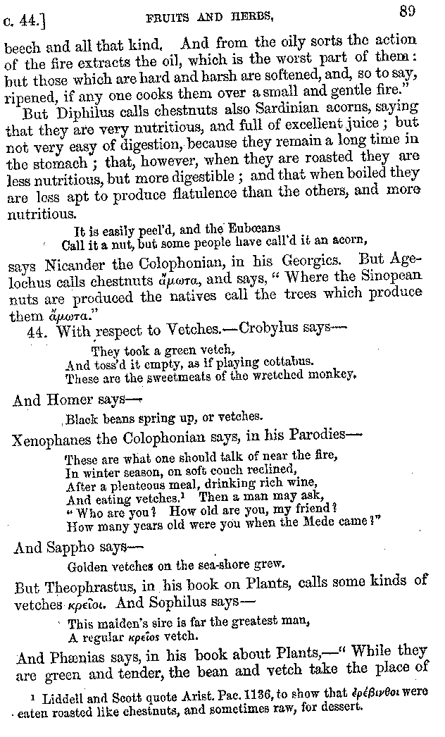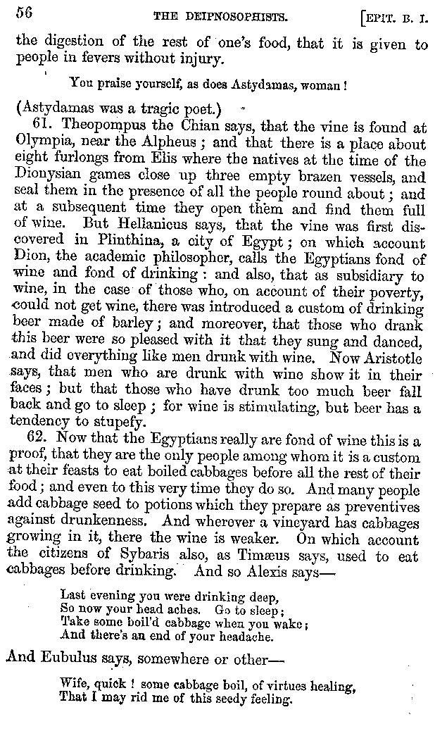 | Wine—Drinking—The evils of Drunkenness—Praises of Wine—Water—Different kinds of Water—Sweetmeats—Couches and Coverlets—Names of Fruits—Fruit and Herbs—Lupins—Names of—Plants—Eggs—Gourds—Mushrooms—Asparagus—Onions—Thrushes—Brains—The Head—Pickle—Cucumbers—Lettuce—The Cactus—The Nile | 57-121 |