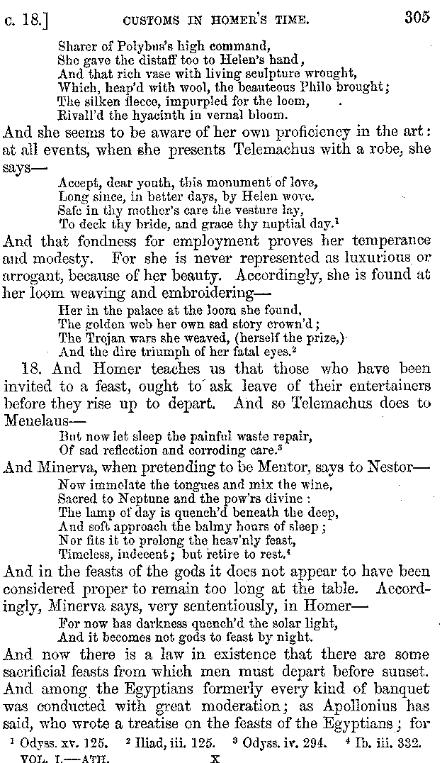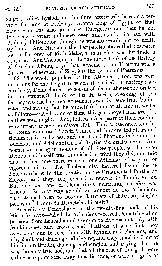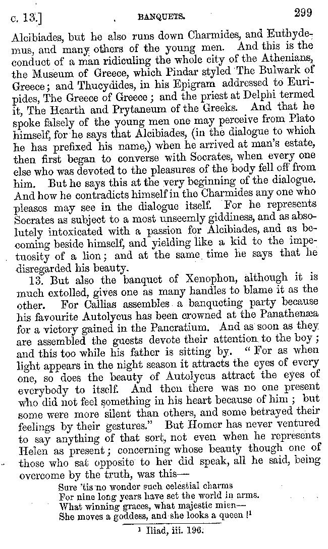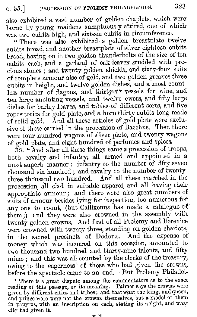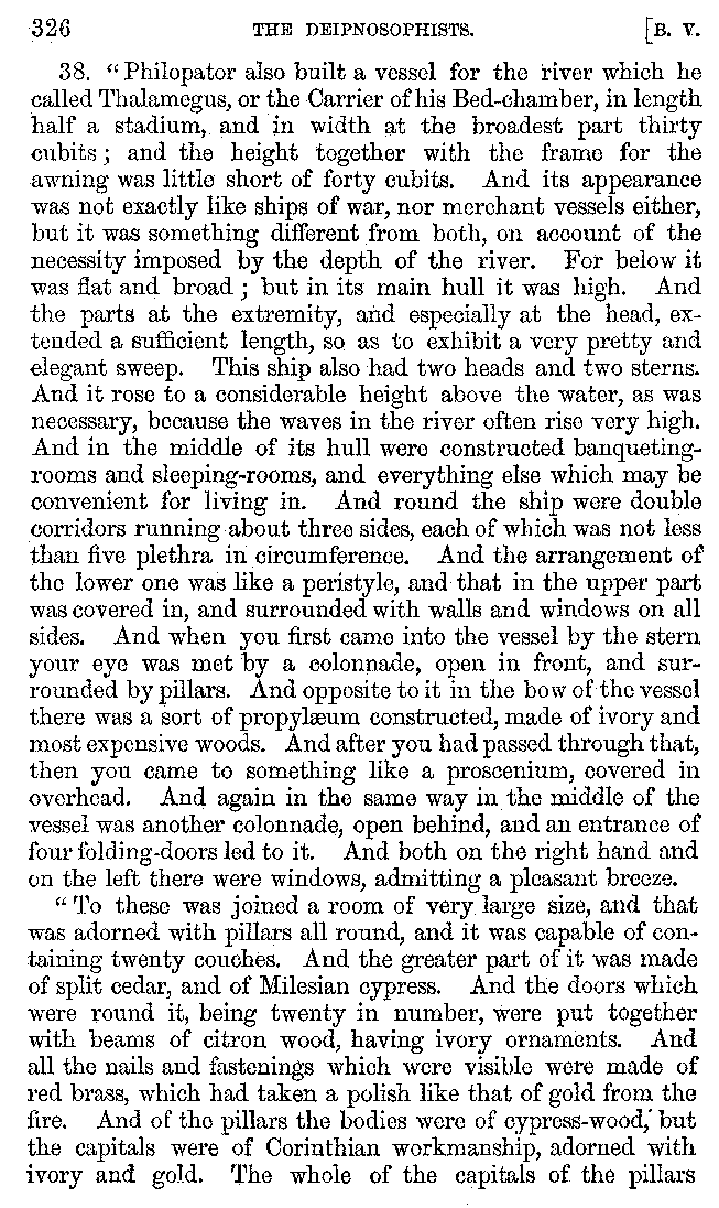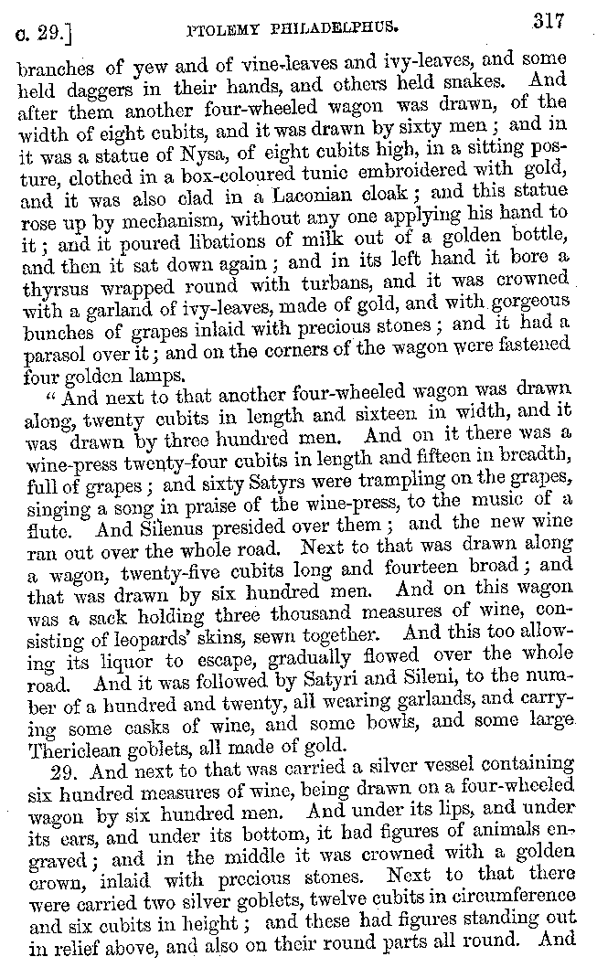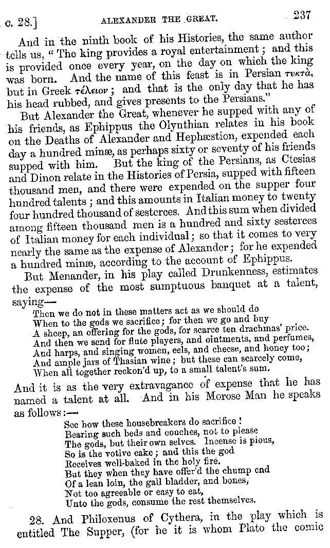 | Banquets—Baths—Banquets—The Banquets described by Homer—Banquets—The Palaces of Homer's Kings—Conversation at Banquets—Customs in Homer's Time—Attitudes of Guests—Feast given by Antiochus—Extravagance of Antiochus—Ptolemy Philadelphus—Procession of Ptolemy Philadelphus—A large Ship built by Ptolemy—The Ship of Ptolemy Philopator—Hiero's Ship—Banquet given by Alexander—Athenio—The Valour of Socrates—Plato's account of Socrates—Socrates—The Gorgons | 287-352 |