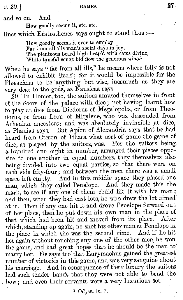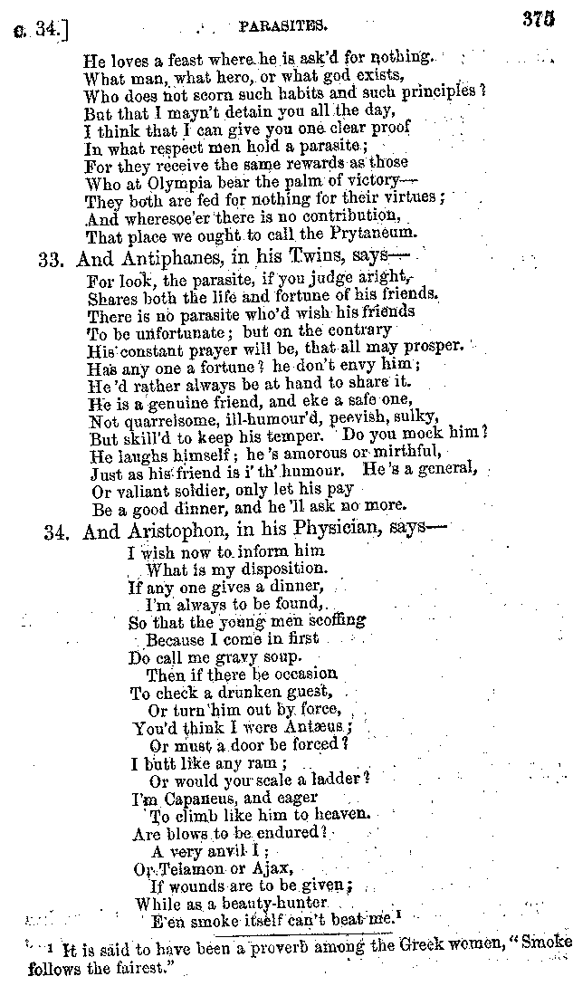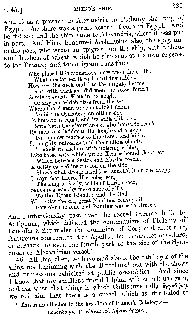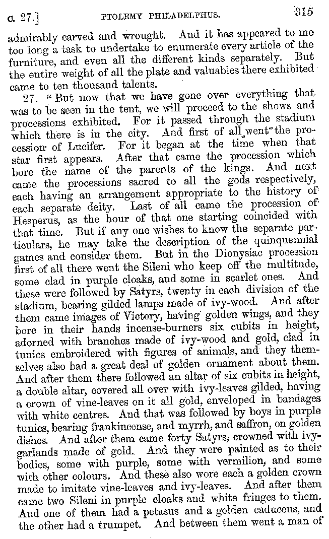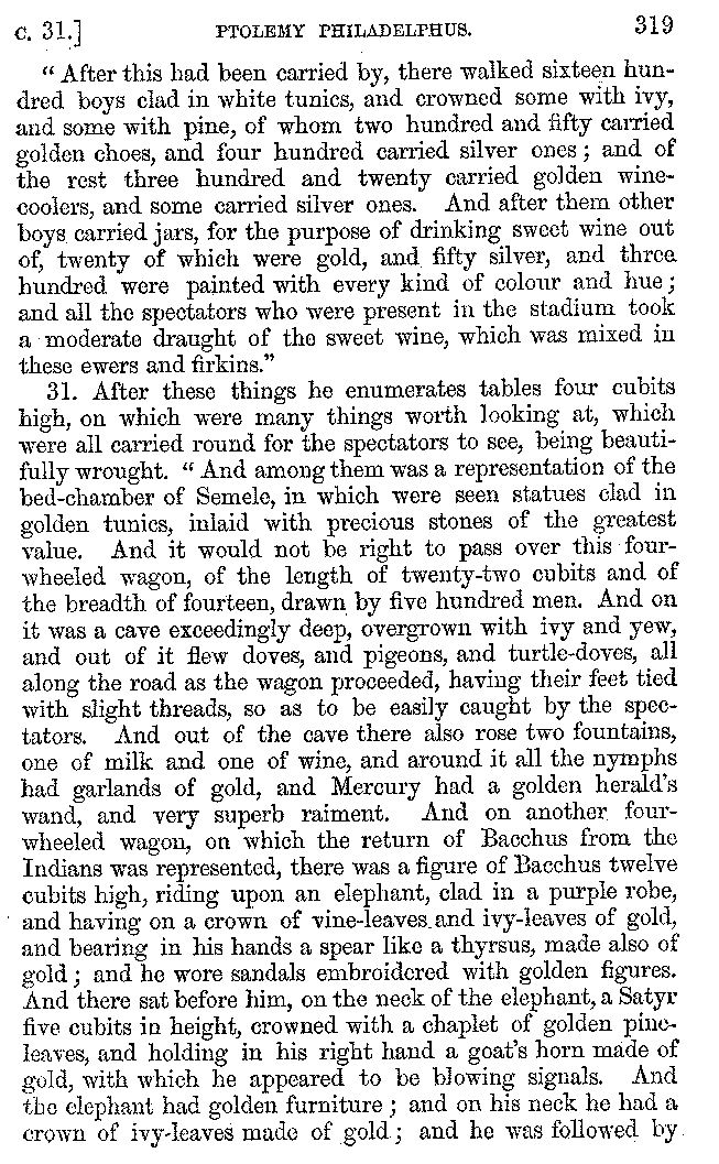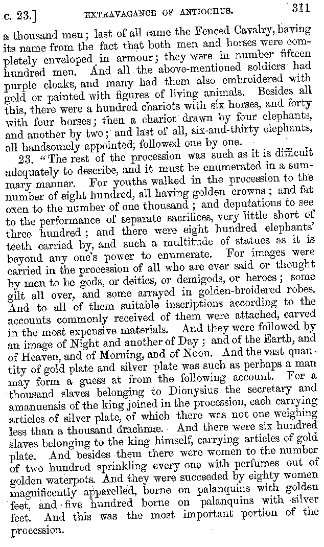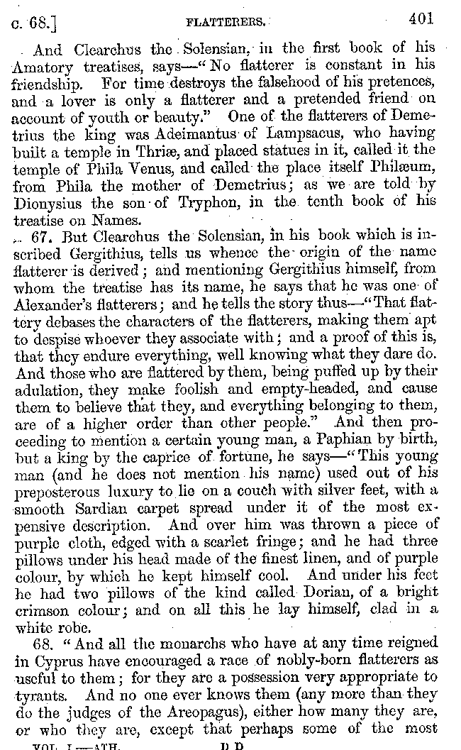 | Banquets—Baths—Banquets—The Banquets described by Homer—Banquets—The Palaces of Homer's Kings—Conversation at Banquets—Customs in Homer's Time—Attitudes of Guests—Feast given by Antiochus—Extravagance of Antiochus—Ptolemy Philadelphus—Procession of Ptolemy Philadelphus—A large Ship built by Ptolemy—The Ship of Ptolemy Philopator—Hiero's Ship—Banquet given by Alexander—Athenio—The Valour of Socrates—Plato's account of Socrates—Socrates—The Gorgons | 287-352 |