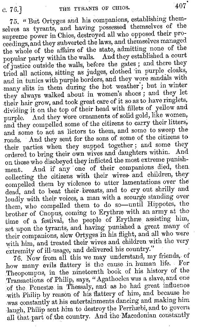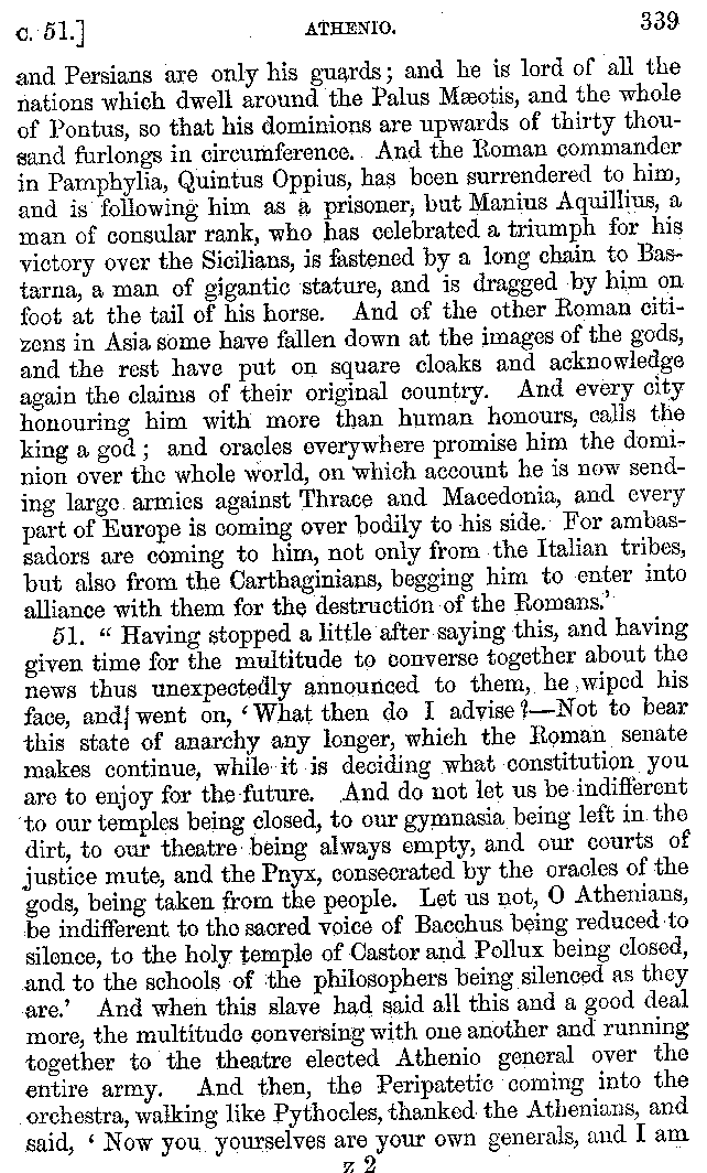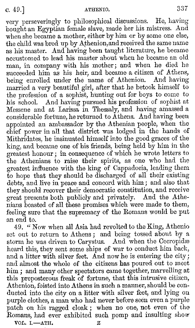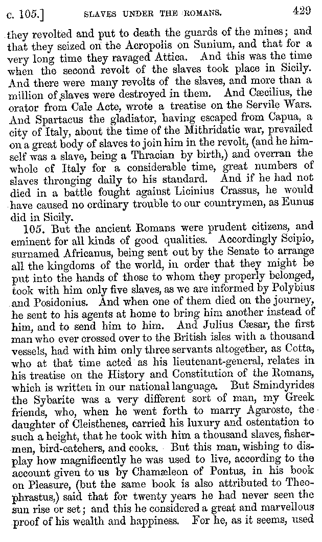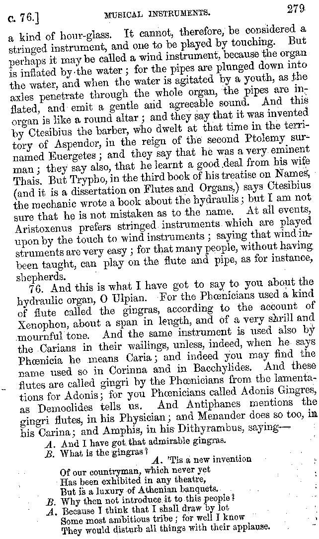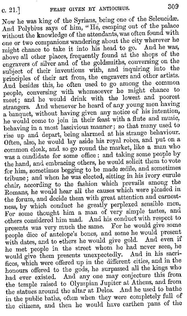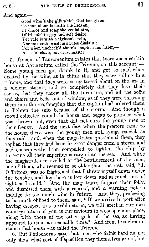 | Banquets—Baths—Banquets—The Banquets described by Homer—Banquets—The Palaces of Homer's Kings—Conversation at Banquets—Customs in Homer's Time—Attitudes of Guests—Feast given by Antiochus—Extravagance of Antiochus—Ptolemy Philadelphus—Procession of Ptolemy Philadelphus—A large Ship built by Ptolemy—The Ship of Ptolemy Philopator—Hiero's Ship—Banquet given by Alexander—Athenio—The Valour of Socrates—Plato's account of Socrates—Socrates—The Gorgons | 287-352 |