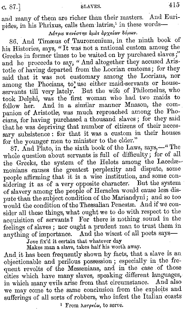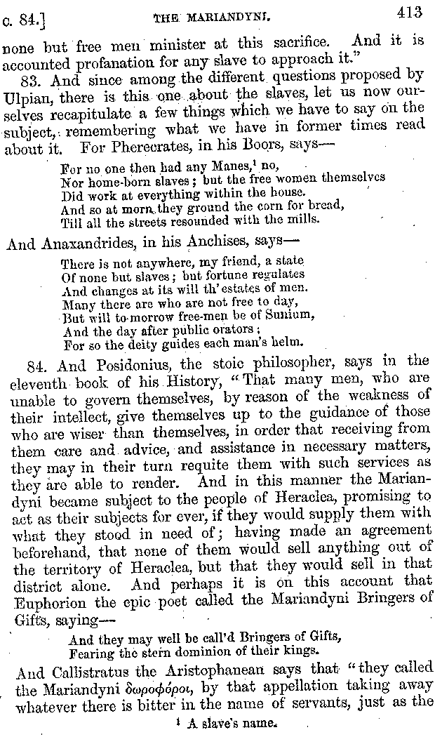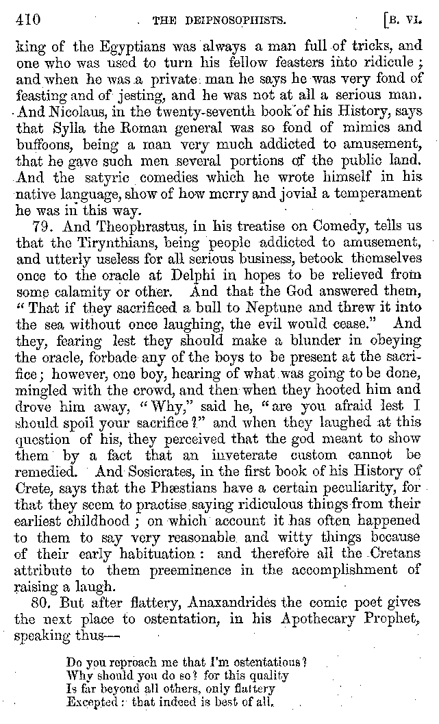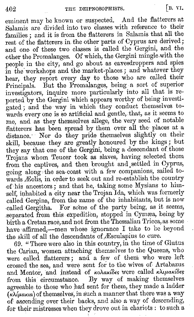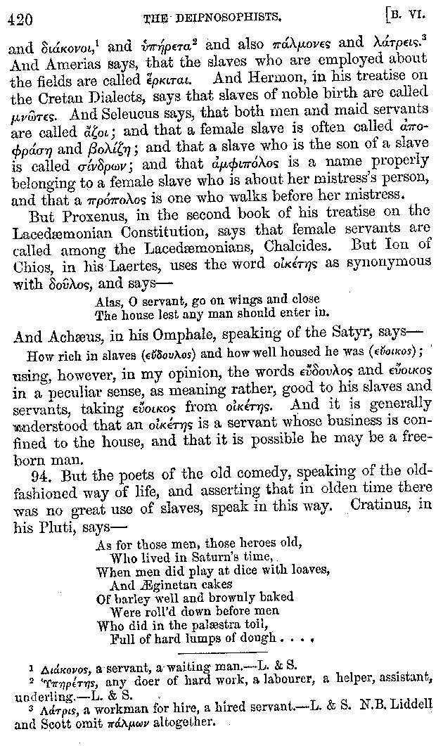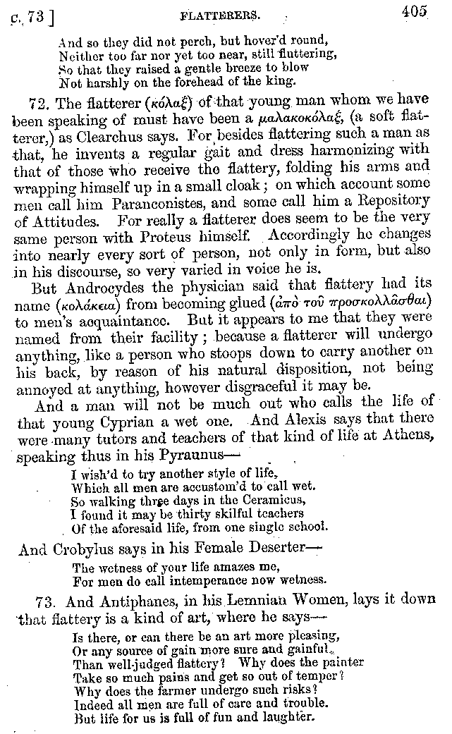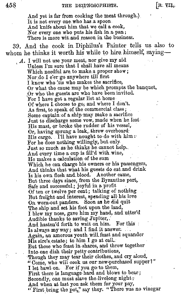 | Tragedy—Fishmongers—Misconduct of Fishmongers—Use of particular Words—Use of Silver Plate—Silver Plate—Golden Trinkets—Use of Gold in different Countries—Parasites—Gynæconomi—Parasites—Flatterers of Dionysius—Flatterers of Kings—Flattery of the Athenians—Flatterers—The Tyrants of Chios—The Conduct of Philip—Flatterers and Parasites—The Mariandyni—Slaves—Drimacus—Condition of Slaves—Slaves—Banquets—The Effects of Hunger—The Mothaces—Slaves under the Romans—The Fannian Law | 353-432 |