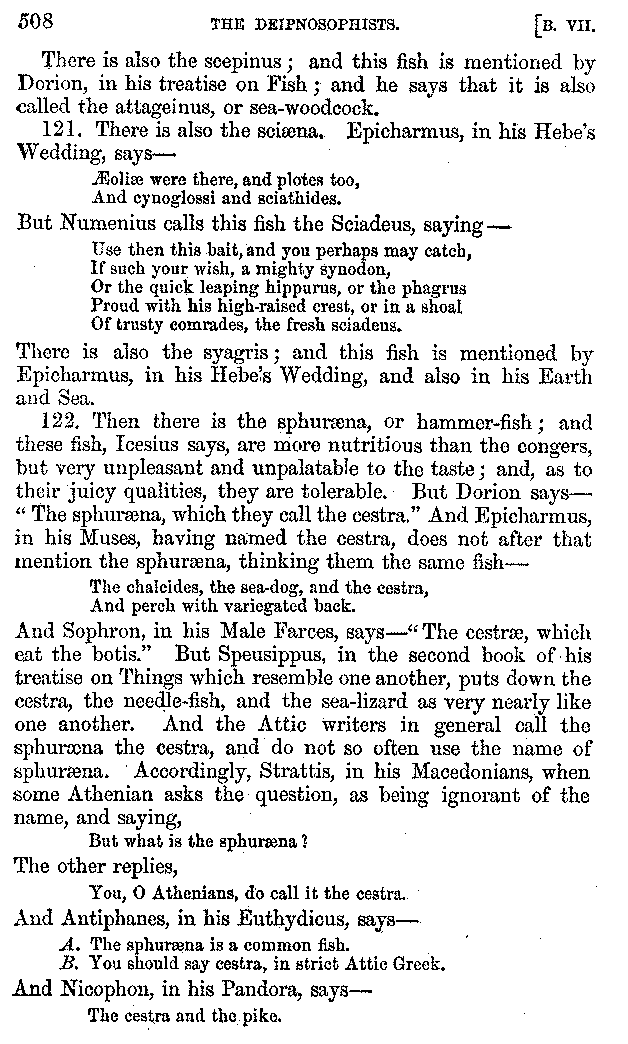 | The Phagesia—Fish—Epicures—Fish—Cooks—Sharks—Fish—Glaucus—Eels—The Tunny-Fish—Fish—Pike—Fish—The Polybus—Fish | 433-521 |