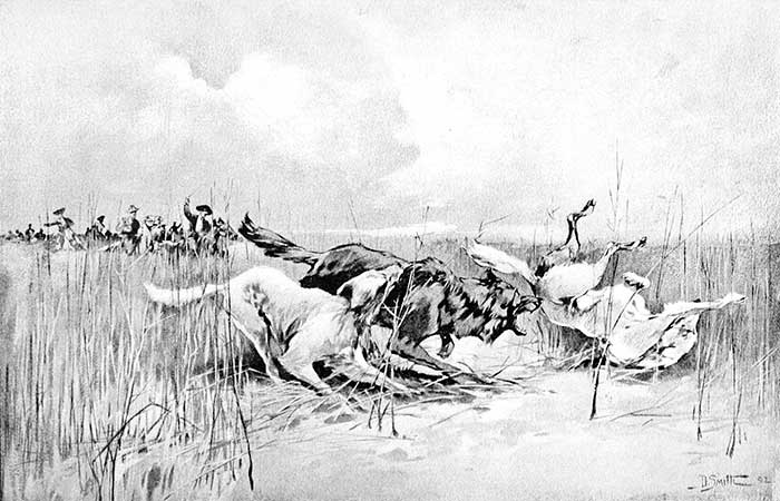 | The men and dogs formed part of the hunt described. | ||