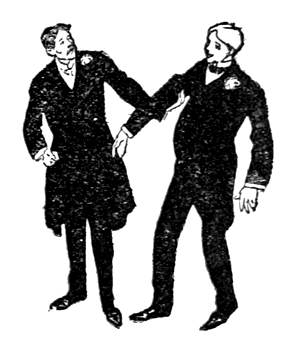 Jennie. Yes, sir; I has no doubt as how you'll be doin' the square thing by Hicks, for, as I was a-sayin', I has been engaged like to him, an' he has some rights; but I think as how, if I puts it to him right like, and tells him what a nice gentleman you are (a ring is heard at the front-door), it'll be all right, sir. But there goes the bell and I must run, Mr. Yardsley. (Ecstatically kissing her hand.) Bob!