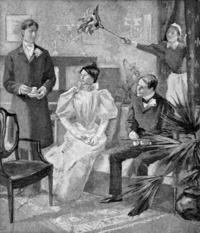 Barlow. Yes, almost too fine to be shut up in-doors. Why aren't you driving, or—or playing golf, or—ah—or being out-doors somewhere? You need[14] exercise, old man; you look a little pale. (Aside.) I must get him away from here somehow. Deuced awkward having another fellow about when you mean to propose to a woman.