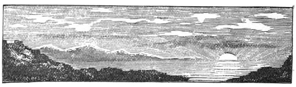 It is a lovely evening in early autumn. Behind the purple hills in the west yonder, the sun has just set in a golden haze, and high up in the sky’s blue there are a few feather-like clouds of brightest crimson. By-and-by these will change to grey, then shadows of night will creep up from glen and dell, the rooks will cease to caw, and we shall hear only the murmur of the river over its pebbly bed, and the wind moaning through the topmost branches and the crisp leaves of those tall swaying trees.