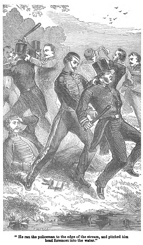 Presently he came out, and I never saw him again. I learned, however, that the next day an old limb of the law hunted him up, and induced him to give up his intention of enlisting, and made all things pleasant with the Queen’s Bays by leaving them a golden medal of their mistress.