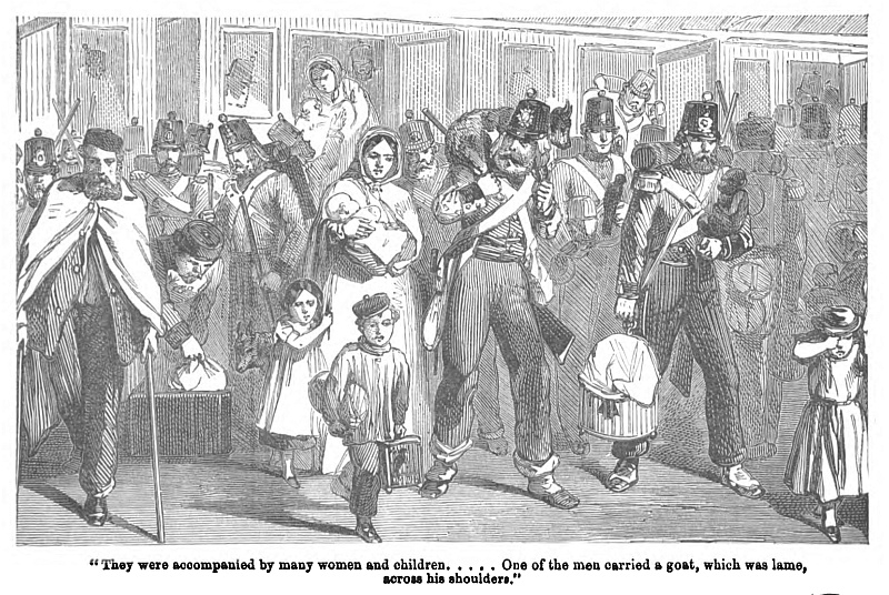 “Well, my hearty,” said one of the soldiers, “come up to the roast,” as he made way for me to be seated near him. The corporal cast his eye from my head to my feet as I neared the light.