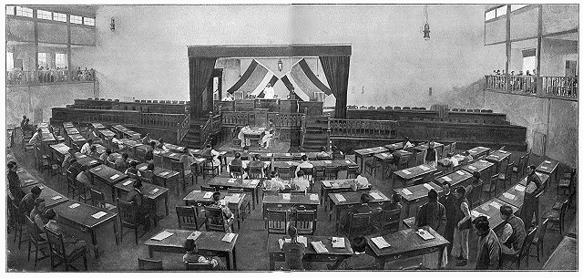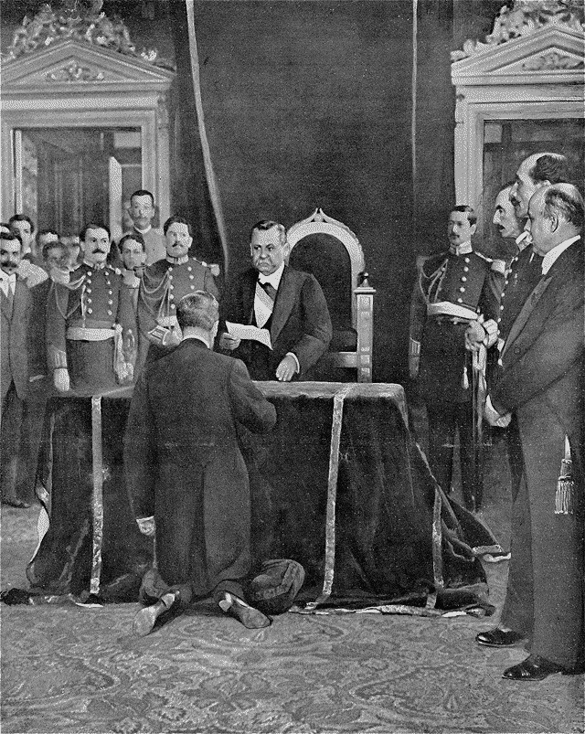 Je sors du «Grand Divan», convoqué à titre consultatif par le gouvernement soucieux, au moment de décider de la paix ou de la guerre et de répondre à la note collective des puissances, d'être assuré de l'assentiment et de l'appui des personnages les plus illustres de la nation. Une même assemblée avait été réunie en 1827, lors de la guerre de l'indépendance grecque, une autre en 1877, au temps de la guerre russo-turque. Toutes deux avaient décidé la continuation de la guerre à outrance, jusqu'au dernier vaisseau, jusqu'au dernier canon. C'est la paix qui sort de celle-ci.