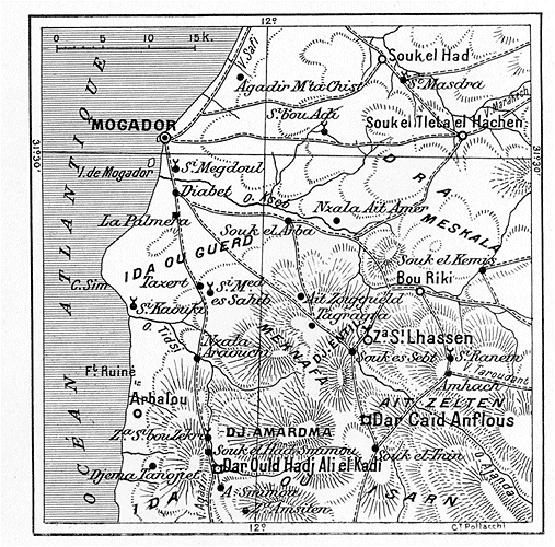 Il est 4 heures. Un uléma à longue barbe blanche, enveloppé dans une pelisse noire, passe devant nous. Il s'approche de la fenêtre qui fait face à l'Orient; des lueurs projetées par le soleil couchant y traînent avant que s'y lève la nuit. Il prie, indifférent à notre présence, se prosternant, se relevant, élevant les mains, ou les tenant autour des oreilles, ou les passant sur la face, s'agenouillant de nouveau, vieux corps assoupli à cette gymnastique sublime. L'occasion, la circonstance, ne lui en font pas hâter ou saccader un geste; qu'importent, pense-t-il sans doute, auprès de la grandeur de Dieu et des promesses faites à ses croyants, ces accidents passagers de la vie d'un peuple à qui l'empire du monde est malgré tout assuré par un décret divin?