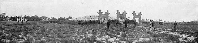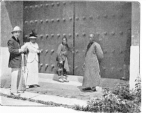 Quelques patrouilles circulent d'un pas lourd et se dandinent pesamment. Des policiers à pied et à cheval barrent les portes du palais; des cavaliers sont massés dans la caserne voisine. On fait quelques difficultés pour nous laisser passer; un officier de paix, assez insolent, veut nous chasser, et, sur notre refus de partir, déclare que les Européens sont plus barbares que les Turcs, quoi qu'ils prétendent. Nous ne bougeons; je lui dis de nous faire arrêter, s'il lui plaît ainsi, et la petite altercation continue quelque temps en langage turc et dans cet ineffable «sabir» levantin ou plus exactement pérote, en usage ici, jusqu'à ce qu'intervienne un haut fonctionnaire de police, fort courtois, qui nous assigne une place. A midi moins le quart, des landaus, des voitures de place, quelques automobiles, se succèdent, amenant les notables; la grande porte s'ouvre pour laisser entrer l'équipage du prince héritier Youssouf Jzeddine et du grand vizir. A midi et demi, tout mouvement a cessé.