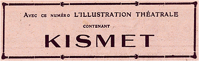 1° L'Illustration Théâtrale contenant Kismet, d'Edward Knoblauch