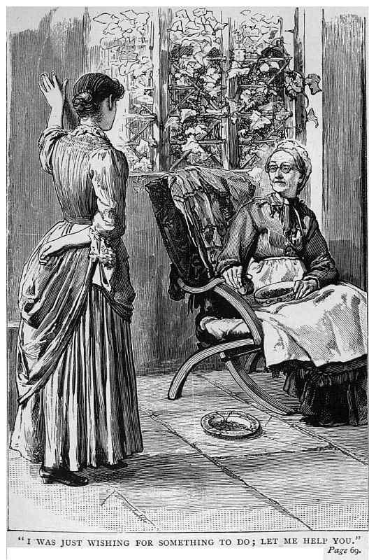 Then they went in, and, finding no one, they went through the house to the garden beyond, where a woman with a large white sun-bonnet on her head was stooping over some budding thing at her feet. She raised herself up in a little, and came towards them, closely examining something which she held in her hand. So she did not see them till she came near the door where they stood. As she glanced up and saw them a shadow seemed to pass over her face. The doctor saw it; but Fidelia only saw the smile that chased it away.