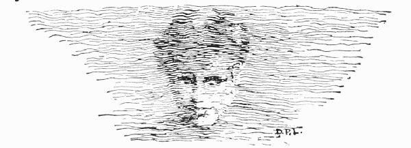 Martin, following its flight, had his eyes quite dazzled by the intense glitter of the False Water, which now seemed to[32] be only a few yards from him: but the strangest thing was that in it there appeared a form—a bright beautiful form that vanished when he gazed steadily at it. Again he got up and began running harder than ever after the flying mocking Mirage, and every time he stopped he fancied that he could see the figure again, sometimes like a pale blue shadow on the brightness; sometimes shining with its own excessive light, and sometimes only seen in outline, like a figure graved on glass, and always vanishing when looked at steadily. Perhaps that white water-like glitter of the Mirage was like a looking-glass, and he was only chasing his own reflection. I cannot say, but there it was, always before him, a face as of a beautiful boy, with tumbled hair and laughing lips, its figure clothed in a fluttering dress of lights and shadows. It also seemed to beckon to him with its hand, and encourage him to run on after it with its bright merry glances.