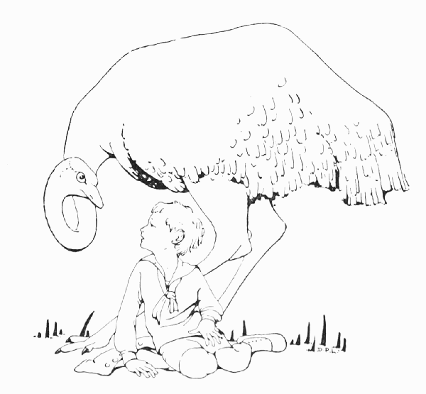 Then Martin sat down on the grass by its side and began to cry. Oh, that great bird, half as tall as himself, and so many times more lovely and strong and beautiful in its life—he had killed it, and it would never fly again! He raised it up very tenderly in his arms and kissed it—kissed its pale green head and rosy wings; then out of his arms it tumbled back again on to the grass.
