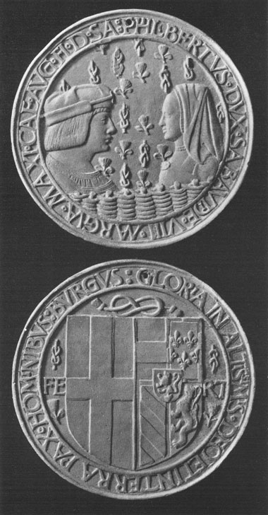 | MEDAL STRUCK AT BOURG TO COMMEMORATE MARGARET OF AUSTRIA'S MARRIAGE WITH PHILIBERT, DUKE OF SAVOY, | 40 | |