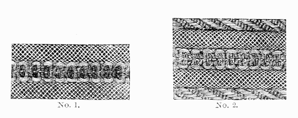 Braid this over a small wire, with a hole in one end like the eye of a needle, so as to draw a small cord in the place of the wire. When you have it braided, take off your weights, tie the ends fast on the wire, and push the braid together; then boil in water about ten minutes, and then take out and put it in an oven as hot as it will bear without burning, until it is quite dry; then take it out and slip it off the wire and on the cord, and sew the ends so it will not slip, and put a little shellac on the end to keep it fast. If you want it elastic, use elastic cord. To vary the size of the braid vary the number of hairs in a strand.