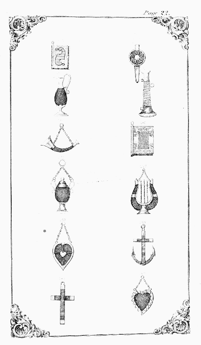 The necessity for a comprehensive work, giving a full and detailed explanation of the Art of manufacturing Hair Work in all its various branches, has been so frequently urged upon the attention of the author, that, in compliance with an almost universal demand, he has concluded to publish a book which will clearly illustrate the Art of Hair Dressing, and making Hair Jewelry and Hair Work of every description. His perfect familiarity with the business—the result of many years' successful experience—renders him eminently competent to impart the fullest information upon the subject of which he treats, while the great consumption and rapidly increasing demand for every description of Hair Goods, will make this work he now presents to the public, one of particular interest to all classes. Heretofore the Art of making these goods has been zealously guarded by a few dealers, who have accumulated fortunes, and would still retain it a profound secret but for the publication of this book. This is the only descriptive volume ever published on Hair Work. It is an elaborate, carefully prepared book, containing over one thousand drawings, devices and diagrams, engraved at great expense to the publisher, and accompanied with the most comprehensive instructions. It not only reveals to the most ordinary comprehension the hitherto concealed mysteries of the Art, but will prove an indispensable adjunct to every lady's toilet table, as by its aid she will not only be able to dress her own hair in every variety of style, but make her own Hair Jewelry and articles of Hair work, including Switches, Braids, Curls, Waterfalls, &c., assisted by a reference to plates of the most modern European and American styles. For children, no art or accomplishment is more useful than the ability to make articles of tasteful ornament in Hair Work. This work will open[6] to all such persons a path to agreeable and profitable occupation. Jewelry Dealers, from the clear instructions herein given, can manufacture any required pattern of Hair Jewelry, and add, without extra expense, a new and lucrative branch to their business.