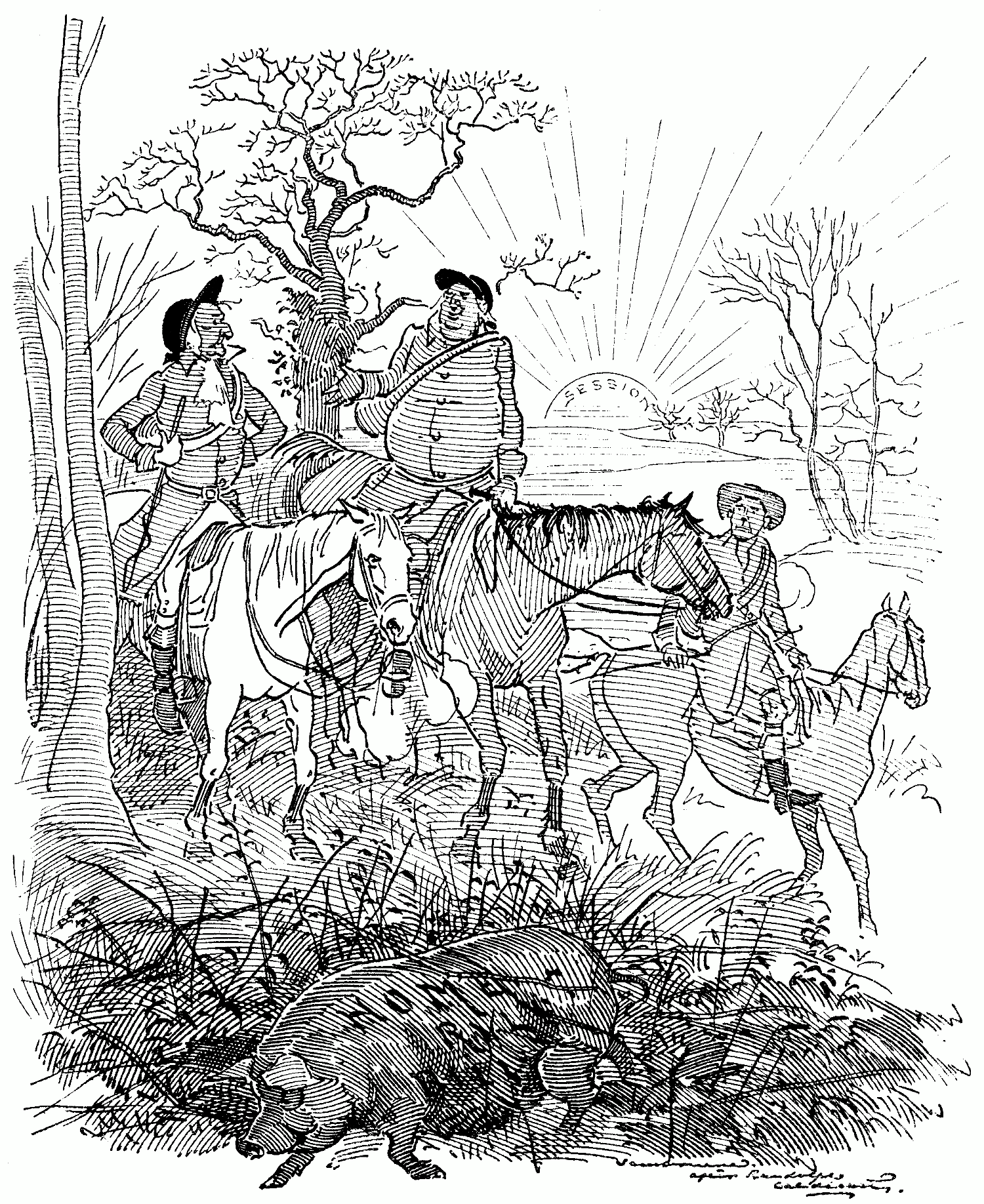 [pg 134]It's of three jovial huntsmen, an' a hunting they did go;