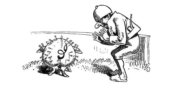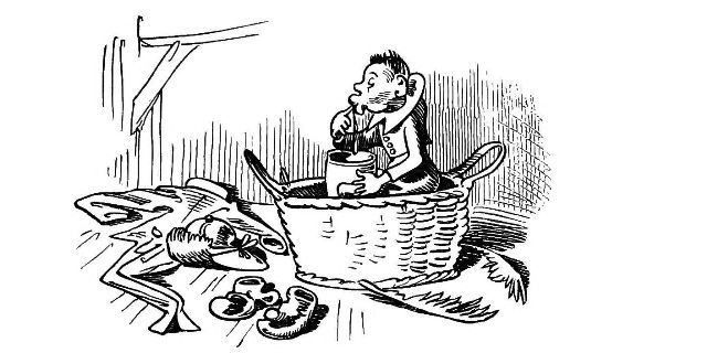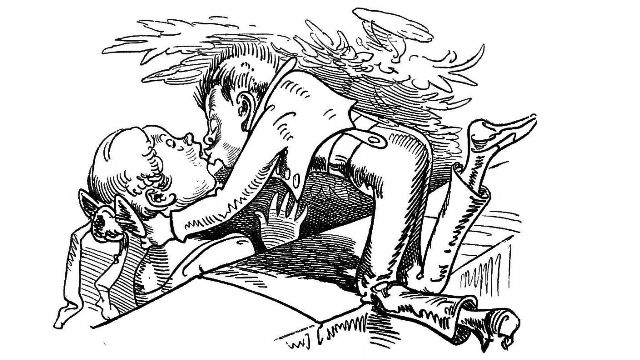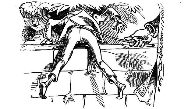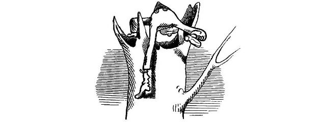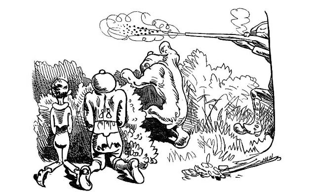 with one hand, and with the other prodded him with his Bowie