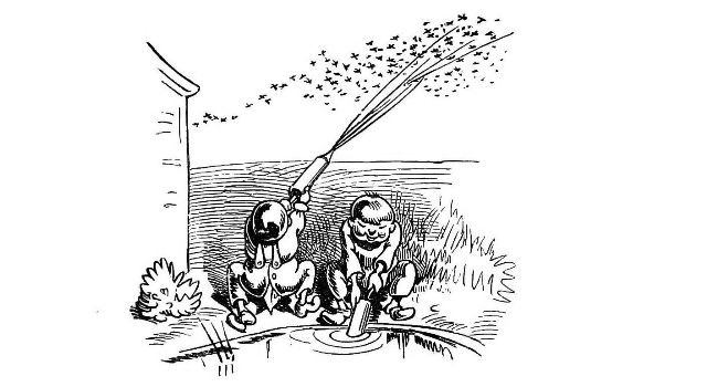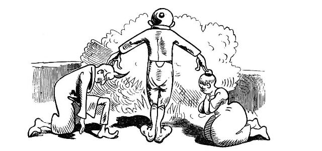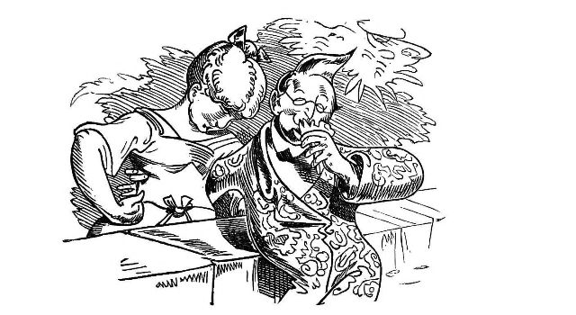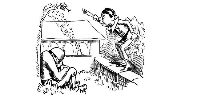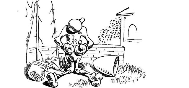John Dull sits waiting for a Swarm.—Page 11.—as I have done for many an hour, and lost the swarm after all. John Dull drops asleep whilst watching. I have often ceased watching just as the swarm was about to rise. The Bees choose their own time, which is not always that which the Bee master would for them. But the whole[Pg 75] subject of swarming, and how to regulate it, or prevent it, will be fully treated of in the forthcoming second edition of "My Bee Book."