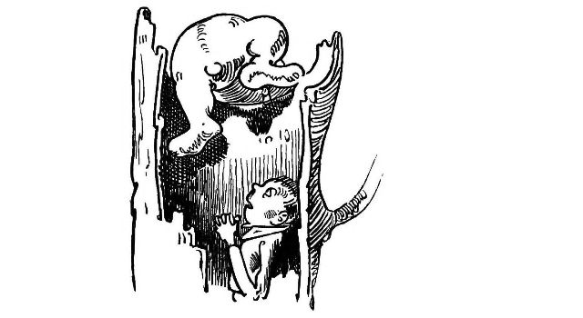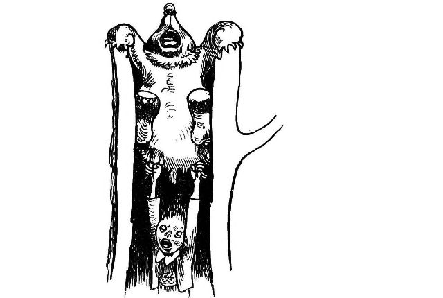 had dropped into a hollow tree is hoisted up by the same "living