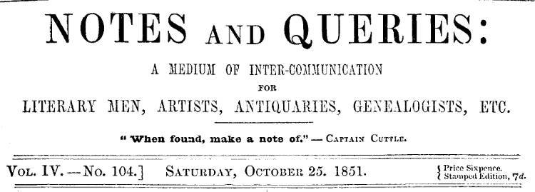 The Project Gutenberg EBook of Notes and Queries, Vol. IV, Number 104,