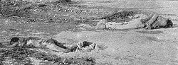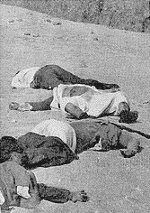 Mais voici l'armée grecque!... Les cadavres restent, les assassins s'enfuient. Et le blessé raconte: «Après la première blessure, j'ai fait le mort. Quand ils sont partis, je me suis levé: les soldats grecs étaient là.»