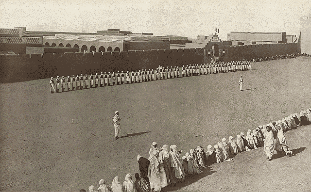 troupes qui défilent devant lui.