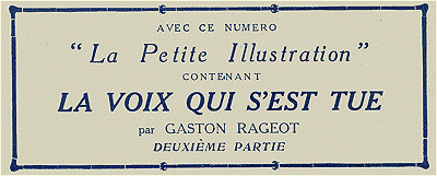 LA PETITE ILLUSTRATION, Série-Roman n° 11: LA VOIX