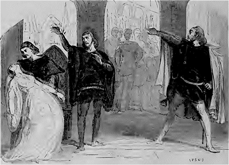 Cependant l'orage gronde au ciel et l'éclair sillonne la nue. Un homme enveloppé d'un manteau demande asile à Landais: c'est le duc en personne; Landais l'a reconnu. Séparé de ses gens par l'orage, le prince a faim et froid; et Landais n'a rien pour le nourrir! Il ne lui reste que les débris de l'escabeau pour allumer un peu de feu et sécher les vêtements de monseigneur.