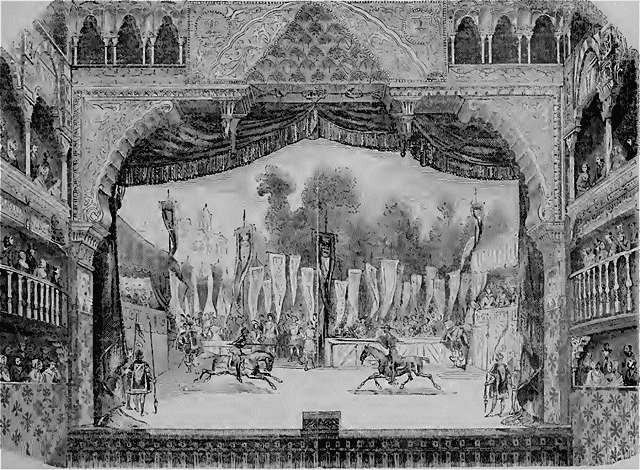 Hélas! don Quichotte a beau être le plus vaillant des héros de la Manche, il succombe enfin dans un terrible tournois contre le redoutable chevalier du Miroir; quelque enchanteur, sans doute! Le clairon sonne, les casques retentissent, les cuirasses étincellent; quels rudes coups d'épée! cependant don Quichotte est vaincu.