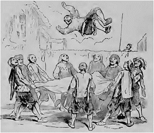 Choisissons seulement quelques épisodes de ce poème mémorable; et d'abord, voici ce bon Sancho: dans quelle situation, ô ciel! et comme il a besoin ici de toute sa philosophie! Les muletiers ont saisi et jeté notre homme sur une couverture de laine; les voyez-vous qui le lancent en l'air à tours de bras et le font rebondir comme une balle élastique; ô mon brave Sancho! jamais ballon joua-t-il son rôle aussi naturellement que toi!