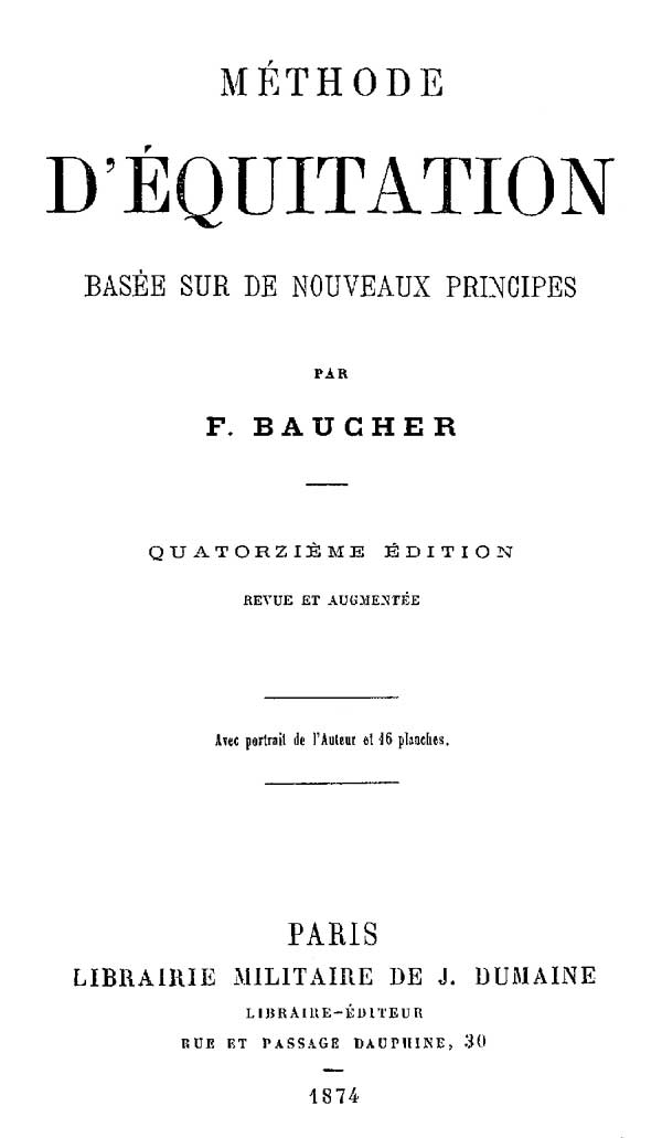 «La méthode de M. Baucher doit faire école, 14 parce qu'elle s'appuie sur des principes vrais, fixes, rationnels, motivés. Tout en elle est mathématique et peut se rendre par des chiffres.