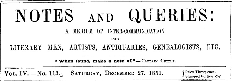 *** START OF THIS PROJECT GUTENBERG EBOOK NOTES AND QUERIES, DEC 27, 1851 ***