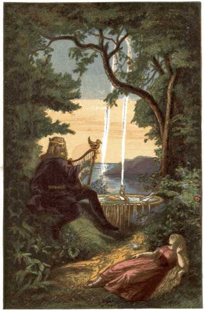 Had she descended to the music of her golden harp into the cold billows? or did she go to rule as queen in the kingdom of dwarfs? Orm and Aslog never knew her fate, but her prophecies of good were richly fulfilled.