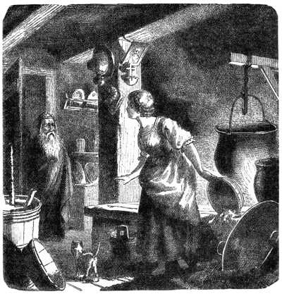 They both listened breathlessly; but there was still no answer. Then Orm poured some of the contents of the cauldron into two plates, and placed them on the table. With trembling at first, but afterwards with growing265 comfort and courage, the wanderers enjoyed the much-needed food.