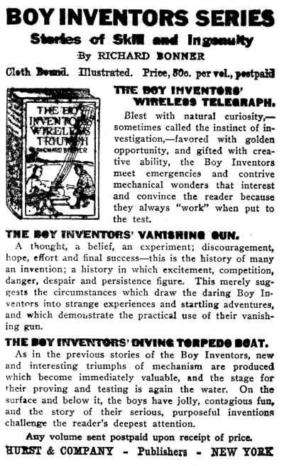 Just then, and before the young newsgatherer could vent his indignation further a cab came rattling up the dock and disgorged at the foot of the Northerner's gangplank three brightfaced, happy-looking lads. They were Tom and Jack Dacre and their inseparable chum, Sandy MacTavish, the voluble Scotch youth whose "thatch" and freckles gave him his nickname. Jack was Tom's junior by two years, but he was almost as muscular and tall as his brother. Both lads were nephews of Mr. Dacre, who had given them their home in the Sawmill Valley of[Pg 9] Maine where they had acquired the name of "Bungalow Boys," by which they were known to a large circle of friends.