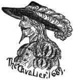 The wide brim of the cavalier hat was arranged as suited the fancy of the wearer, some of whom allowed it to take its natural shape, some would wear it looped up on the side, and by others it was caught up and attached to the crown at different angles; in fact, it was modeled very much as the ladies now-a-days do the "Gainsborough," exercising their own individual fancy as to the treatment of the brim.