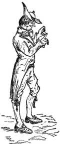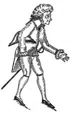 Planché, in his "Cyclopædia of Costumes" (vol. 1, page 261), quotes a humorous description, evidently referring to this particular style, as follows: "Some wear10 their hats with the corners that should cover the forehead high in the air, these are called Gawkies; others do not half cover their heads, which, indeed, is owing to the shallowness of their crowns, but between beaver and eyebrows exposes a blank forehead, which looks like a sandy road in a surveyor's plan."