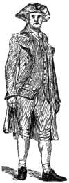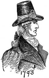 The style of hat of this period (1731) had the sides of the brim turned up, with a front of an easy curl, which,9 nearly resembling a cap-visor, made it in shape somewhat between a hat and cap; this seems to have been the first approach toward the "cocked" or three-cornered hat afterwards so extensively used, and to Americans the most familiar of past styles, from its being a fashion of the period of the Revolution, by which it became the prominent part of an historical costume. The arbitrary law before alluded to was afterwards modified, but an uncomfortable restriction continued to be enforced upon all manufactures, for in the year 1750 the English Parliament, among other unjust acts, enacted a law forbidding exportation of hats from one colony to another and allowing no hatter to have more than two apprentices at one time, "because the colonists, if let alone, would soon supply the whole world with hats."