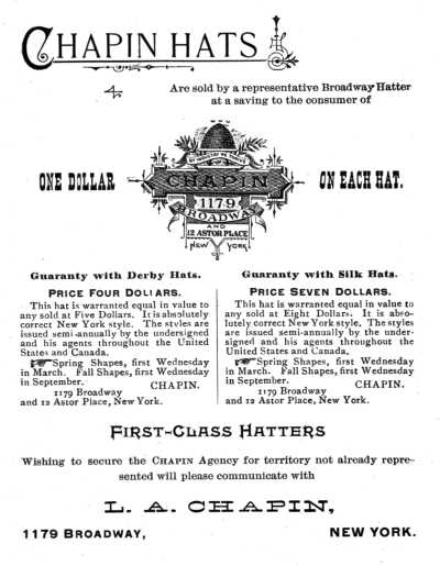 Continued familiarity with the present system of making hats has the tendency in a great degree to prevent a recognition, until brought to our notice by comparison of the wide difference existing between the old and new methods, and this common every-day experience assists in making us unappreciative of the remarkable improvements that have been made in this branch of business.