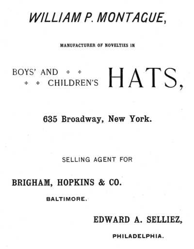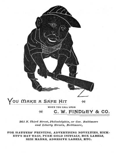 In a series of articles it is proposed to give an account of the growth of the hat manufacturing business, one of the most interesting of Baltimore's industries; how at an6 early period it was raised into conspicuous prominence in common with other enterprises undertaken in the active spirit which has always characterized Baltimore merchants as among the foremost of their time. They will also treat of its gradual growth and development, followed by a temporary decline of progress caused by the Civil War and its consequences, and finally of its triumphant stride to place itself again in line with other leading industries of this enterprising metropolis, for without doubt it holds to-day an enviable position among the different trades, a position acquired by the thoroughness, determination and perseverance of those engaged in its development.