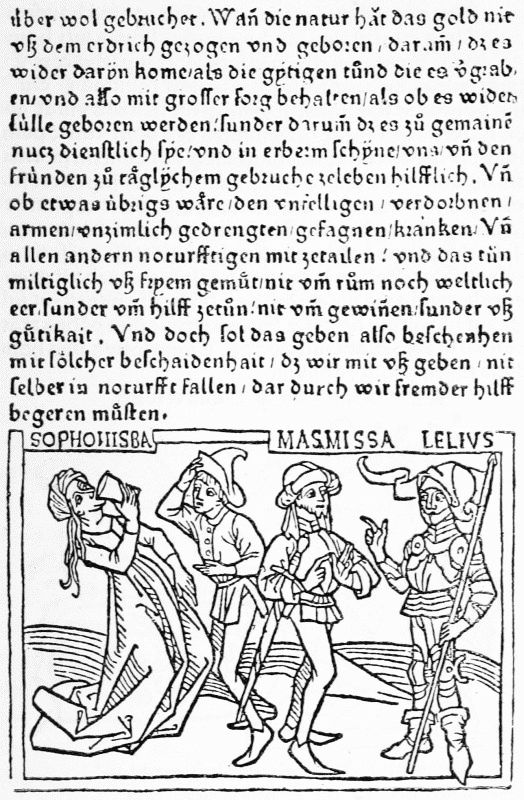 [1] In a copy of the edition of Suetonius, printed by Sweynheym and Pannartz at Rome in 1470, which belonged to William Morris, and is now in the Morgan collection at New York, there are nine excellent woodcut capitals used with a handsome border-piece, which do not appear in other examples. Dr. Lippmann found similar decorations in the 1465 edition of Lactantius, printed at Subiaco by the same firm. In this case the blocks probably belonged to the printers, but were used to decorate only a few copies.